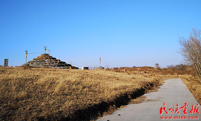 內(nèi)蒙古通遼市科爾沁左翼中旗白音塔拉農(nóng)場蒙古族特色濃郁,遠(yuǎn)處一座新壘起的敖包承載著當(dāng)?shù)剞r(nóng)牧民的心靈寄托和新年期望