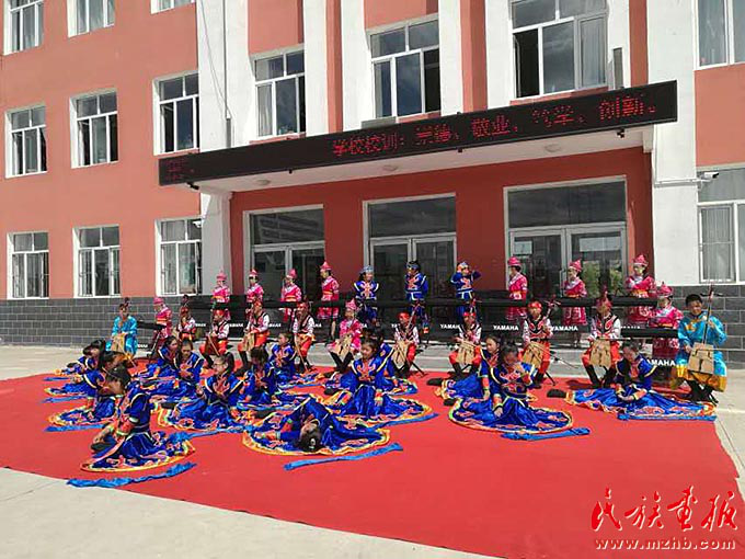 農(nóng)牧民的孩子們在家門口的小學(xué)里也能接受到專業(yè)系統(tǒng)的藝術(shù)教育,圖為孩子們在進(jìn)行才藝表演