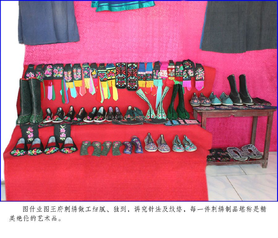 圖什業(yè)圖王府服飾包括:服裝、服飾、鞋帽及馬匹裝飾等?;蛸|(zhì)樸、清新,或漂亮、華貴,或錯落有致;既有山水,又有花鳥,形象逼真,惟妙惟肖,色彩協(xié)調(diào),圖案精美;其做工細膩獨到,講究針法及紋路,每一件服飾制品堪稱是精美別致的藝術品。