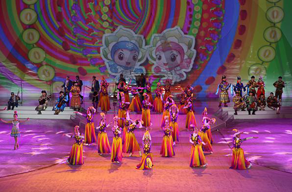 2016年1月20日,為期11天的第十三屆全國(guó)冬季運(yùn)動(dòng)會(huì)在烏魯木齊冰上運(yùn)動(dòng)中心速滑館拉開大幕。開幕式由體育儀式、文體表演和點(diǎn)燃主火炬塔三個(gè)部分組成。在文體表演章節(jié),承擔(dān)本次開幕式文體表演與伴舞任務(wù)的新疆藝術(shù)學(xué)院200名學(xué)生與來(lái)自新疆各民族的文藝工作者一起,為觀眾獻(xiàn)上了一臺(tái)精心策劃和編排、以“冰雪天山陽(yáng)光絲路”為主題的精彩表演。參加開幕式文體表演的舞蹈系2014級(jí)、2015級(jí)學(xué)生,大部分是第一次參加國(guó)家級(jí)的大型活動(dòng),他們克服嚴(yán)寒,用自己的實(shí)際行動(dòng)為精彩冬運(yùn)會(huì)助力添彩