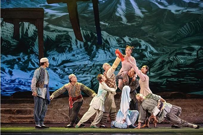 同時,作為以“花兒音樂”為主的音樂劇,該劇在發(fā)掘和弘揚民族音樂的同時,充分發(fā)揮現(xiàn)代交響樂的音樂張力、表現(xiàn)力和震撼力,賦予音樂劇以現(xiàn)代節(jié)奏,使得全劇顯示出波瀾起伏而張弛有度、潤澤細微而又縱橫捭闔的大劇格局。在舞蹈方面,該劇既能讓觀眾觀賞到柔美的迎客舞、剛勁的踏腳舞,又可見狂飆突進式的現(xiàn)代舞蹈,樂與舞的結(jié)合使得該劇更具可視性與感染力。