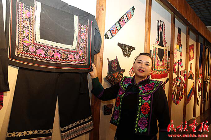 墻上的刺繡物品均是李長(zhǎng)征從各地收集來(lái)的,最久的飾物距今有200多年歷史(民族畫報(bào)曾穎 攝影)
