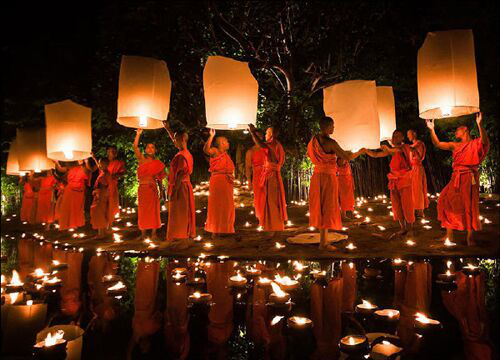 “奧瓦薩”時間在傣歷1 2月1 5日(陽歷9月中旬)。這一天,表示從“關(guān)門節(jié)”以來的安居齋戒期已滿,男女老幼皆盛裝去佛寺里拜佛,以食物、鮮花、蠟條、錢幣獻佛,向佛祖懺悔,祈求佛祖賜福降平安,同時舉行盛大的娛樂集會,“章哈”演唱,放高升、晚上放焰火、放孔明燈等,慶祝開門節(jié)。此時,雨季已過,稻谷收割完畢,故也稱為慶祝豐收的節(jié)日。