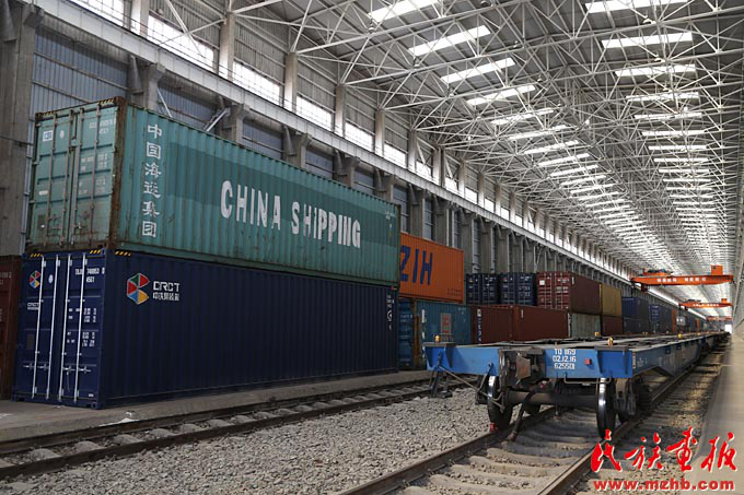 阿拉山口口岸有亞洲最大的“全天候”室內(nèi)集裝箱換裝場(chǎng),年換裝能力20萬(wàn)標(biāo)箱(滕俊 攝影)