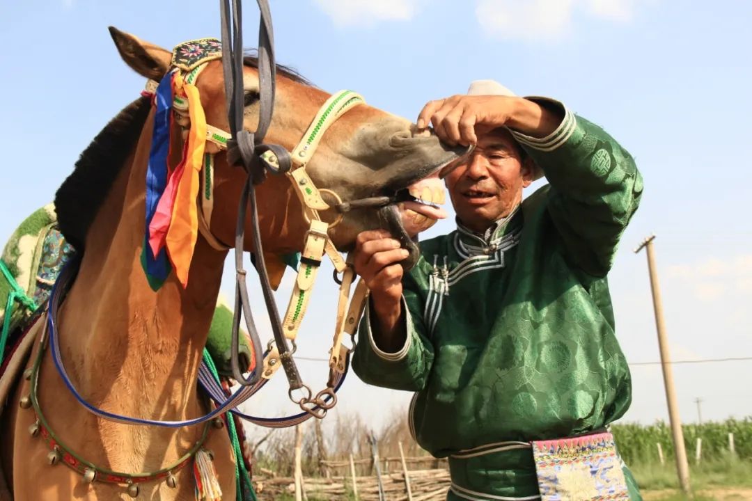 馬的交叉行走分為兩種。一般情況下,馬的右前腿和左后腿同時(shí)往前走,左前腿和右后腿并前行叫作“通西業(yè)”;左前腿和后腿并行或右前腿和后腿并行叫作“走馬式行走”。走馬分為賽布日吉擾、海日查格吉擾、德古日吉擾、塔拉吉擾、胡日頓吉擾等5種。小走是走馬中最簡(jiǎn)單的行走方式,不費(fèi)多大力氣。海日查格吉擾是在小走的基礎(chǔ)上稍微快一點(diǎn)兒的行走方式,這是馬天生的步式之一。德古日吉擾是在賽布日吉擾和海日查格吉擾的基礎(chǔ)上訓(xùn)練出來的走馬步式。把這種步式再加訓(xùn)練,比之前稍快,達(dá)到能進(jìn)入賽場(chǎng)的程度時(shí)就稱為塔拉吉擾。馬的塔拉吉擾還存在于訓(xùn)練階段,只有經(jīng)過進(jìn)一步的訓(xùn)練才能使馬的四肢之間的距離保持均衡,成為胡日頓吉擾(快走馬)。