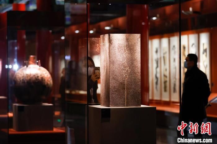 此次展覽是繼2019年“韓美林生肖藝術(shù)大展”之后,韓美林藝術(shù)第二次進(jìn)故宮展覽。歷經(jīng)數(shù)十年,韓美林從散落多地的甲骨、石刻、巖畫、古陶、青銅、陶器、磚銘、石鼓等歷代文物上,搜尋記錄了數(shù)萬個(gè)古文字符號,又耗時(shí)數(shù)年將這些歷史文化遺存匯集成“天書”。古文字的神秘、歷史的曠遠(yuǎn)、書法的韻致,以及藝術(shù)家的才情,融會貫通于一體。