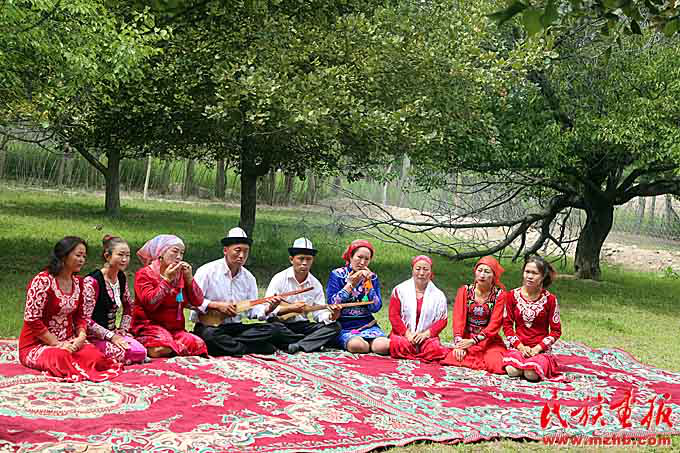 據(jù)色帕巴依鄉(xiāng)黨委委員阿依木古麗·艾山卡德介紹,該鄉(xiāng)在鄉(xiāng)中心小學(xué)專門開設(shè)課程教學(xué)生學(xué)彈庫(kù)姆孜琴,并積極舉辦“我為庫(kù)姆孜代言”活動(dòng),積極培養(yǎng)庫(kù)姆孜傳承人。此外,鄉(xiāng)里還專門組建有庫(kù)姆孜彈唱隊(duì)。“我們利用百日文化廣場(chǎng)和日常的演出走村串巷,積極參加縣宣傳部開展的各項(xiàng)文體活動(dòng)。今年2月開展的群眾大會(huì),把庫(kù)姆孜音樂重新填詞,配合惠民政策宣傳,將傳播民族文化與群眾思想政治工作相結(jié)合。”同樣,在烏恰縣吾合沙魯鄉(xiāng)恰提村,當(dāng)?shù)伛v村工作隊(duì)積極組織20名返鄉(xiāng)學(xué)生開辦“庫(kù)姆孜彈唱文藝培訓(xùn)班”,廣泛調(diào)動(dòng)返鄉(xiāng)大學(xué)生加入到文化傳承的行列中。