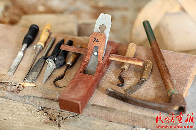 這間工作室的主人叫阿吉?jiǎng)e克·買買達(dá)洪,主人恰巧有事外出,他的弟弟,年輕朝氣的吾蘭別克張羅著給記者們當(dāng)起了翻譯。正忙活著打磨樂器的小伙叫木沙,今年31歲,問起庫(kù)姆孜的制作工藝,他才把頭抬起來,笑著說:“我做這個(gè)十年了。一把庫(kù)姆孜,往往琴身是杏木,蓋子是松木。杏樹、松樹木切割后放在干燥的地方,一兩年后才能用?!睅?kù)姆孜有三根弦,琴弦以前用動(dòng)物的腸子手工自制,現(xiàn)在有的工匠開始使用現(xiàn)成的弦。判斷庫(kù)姆孜手工藝人手藝高低的關(guān)鍵何在?木沙解釋說,“要看彈出來的聲音。木頭的原料不同,出來的聲音也不同。”這個(gè)回答似乎也隱藏了手工藝人的絕活所在,可意會(huì)不可言傳的技藝,往往在一代代的工匠手中以師徒親授的方式傳承。