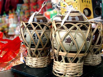 把鹽漬好的青菜削去老葉、粗皮,用甜酒、糖拌勻,再按比例加入蒜苗、蒜頭、辣椒粉、冰糖、食鹽和適量白酒,調(diào)好后分壇包裝,密封貯存。約兩個(gè)月后即可出廠銷售。