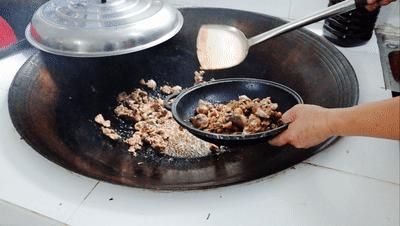 就著小火慢慢浸出來的雞油細(xì)細(xì)地將黃豆與雞骨頭炸脆,