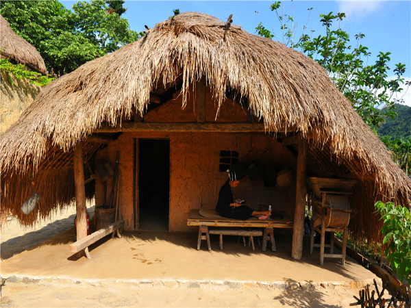 船形屋有高腳船形屋與矮腳(落地式)船形屋之分,外形像船篷,呈拱形。船形屋的建筑特點是,平面呈縱長方形,兩端山墻設入口,屋蓋一般是半圓拱形,房屋的輪廓像是一條倒扣的帆船。這類房屋不設窗戶,只從兩端開門,前面有一個陽臺,置一個樓梯供上下,進門后整個“船”身分為三節(jié),像三個艙,各有小門相通,第一節(jié)是“廳”,設有閣樓,存放糧食與雜物、家什等;第二節(jié)是臥室,除了放床以外,還放火灶,作為蒸酒或烤火之用;第三節(jié)面積最小,開一個后門,是每天舂米和放置生產(chǎn)工具、雞窩的地方。