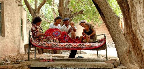 走進(jìn)火焰山的時(shí)候,你就會(huì)發(fā)現(xiàn)一種奇怪的現(xiàn)象:家家戶(hù)戶(hù)的門(mén)口或者院落里的葡萄架下,多擺放著一兩張鐵床或木床,甚至有的慶就擺在水渠旁邊。游客會(huì)驚奇地部:這是人們睡覺(jué)的床嗎?是的,因?yàn)橥卖敺珶崃?,夜里大家都喜歡在房外睡覺(jué),外面夜風(fēng)涼爽,又沒(méi)有蚊子咬,當(dāng)?shù)孛耧L(fēng)淳樸,素來(lái)有“夜不閉戶(hù)、路不拾遺”的好風(fēng)尚,所以人們都放心 在屋外睡覺(jué),一覺(jué)能睡到日上三竿。你看到的這種“鐵床擺在大門(mén)外”的情景,在吐魯番的許多鄉(xiāng)村,甚至在吐魯番市區(qū)內(nèi),都是人們司空見(jiàn)慣的。