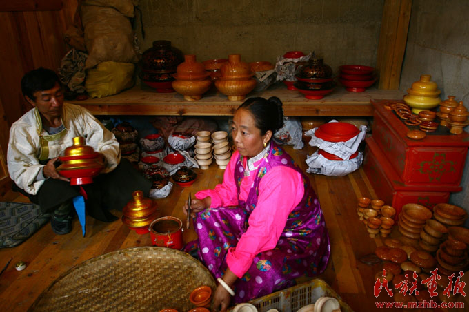 牧業(yè)。 藏區(qū)的牧業(yè)占很大比例,牛羊是藏族的重要生活資源。牦牛是青藏高原的特產(chǎn),被譽(yù)為“高原之舟”。牦牛原是野牛,很早以前,被人們馴化后,成為既產(chǎn)乳、毛、肉,又可役用的家畜。牦牛全身是寶,現(xiàn)在,一頭成年牦牛價值近萬元,是牧民的主要生活資料。牦牛生活在海拔3000米左右的山上,除奶牛外,其他牦牛常年在野外,牧民不必天天放牧,十天半月查看一次,到春季脫毛時將牦牛趕回圈中拔毛刷絨。牦牛毛是拔而不是剪,拔毛時先將毛纏在一30厘米長的木棒上,然后用力拔,拔完長毛后在用一把七齒鐵刷刷絨。牛絨有極好的保暖性,是制絨衣的上好材料。