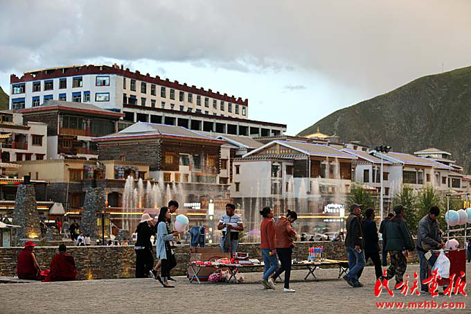 災(zāi)后重建讓玉樹大踏步前進,人們悠閑地走在廣場上享受著基礎(chǔ)設(shè)施改善帶來的各種便利