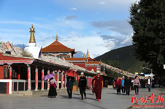 黃昏的嘉那嘛呢石經(jīng)城,當(dāng)?shù)剞D(zhuǎn)經(jīng)人和來自各地的游客