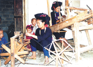 哈尼族制作服飾的歷史悠久,村村寨寨都有本民族自行研制的成套木制服飾制作機(jī)(制線機(jī)、絞線機(jī)、織布機(jī)等),家家戶戶都有制作服飾的能手。不論是逢年過(guò)節(jié),還是日常的農(nóng)閑時(shí)間,哈尼山寨隨處都可以看到婦女們制作服飾的場(chǎng)景。有的是獨(dú)家用一套服飾制作機(jī),有的是幾家合用一套服飾制作機(jī),以純棉花為原料,自行設(shè)計(jì)制作,形成一套獨(dú)辟蹊徑的服飾制作技術(shù)(制線、絞線、織布、染布、服飾設(shè)計(jì)、裁剪、刺繡等)。她們能用繡、挑、扣等方法,在衣褲上刺繡各種花卉、龍、虎、雞、鳥(niǎo)、魚(yú)等復(fù)雜的圖案,精致巧妙,鮮艷奪目。