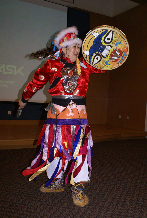 赫哲族是一個能歌善舞的民族。其傳統(tǒng)舞蹈與赫哲族人民的漁獵生產(chǎn)方式和思想觀念密切相關(guān),《天鵝舞》反映了赫哲族的狩獵生活,《篝火舞》表達(dá)了赫哲人對狩獵豐收的期盼, 《叉草球舞》表現(xiàn)了青少年高超的叉魚本領(lǐng),《薩滿舞》折射出赫哲族的傳統(tǒng)宗教信仰思想和崇拜觀念。這些舞蹈藝術(shù)既是赫哲族人民的寶貴精神財富,又是祖國文化藝術(shù)百花園中的絢麗奇葩。