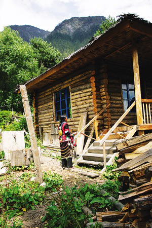 2006年,當我再次出現(xiàn)在珞巴族小伙兒達瓦面前時,他簡直無法相信眼前的事實,只是站在一步之遙的地方,默默地朝我笑著,笑容略帶羞澀。我問:“還記得我嗎?”他點點頭說:“你真的來了?!比缓蠼又f:“我們一起去看群宗(達瓦的妻子)吧!”于是,我跟著達瓦走進了密林深處的西藏自治區(qū)林芝地區(qū)米林縣南伊珞巴族民族鄉(xiāng)的瓊林村。