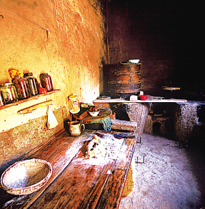 居室內(nèi)紅箱、畫柜耀人奪目,墻上掛有阿拉伯文字的對(duì)聯(lián)。屋檐下的臺(tái)階上,始終放著一個(gè)隨時(shí)洗手洗臉用的“湯瓶”,既節(jié)約又清潔。東西偏屋為晚輩居住,南邊為牲畜和草料房。東鄉(xiāng)人認(rèn)為家居四方平正,財(cái)源廣,子孫榮,門庭興旺。廚房是獨(dú)立的,砌鍋灶,有大案板,方便以面食為主的飲食習(xí)慣。