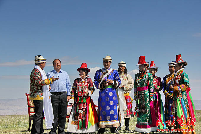 在 CCTV《相約》欄目錄制現(xiàn)場(chǎng),裕固族人民向全國(guó)觀眾介紹肅南縣及裕固族文化(肅南裕固族自治縣縣委宣傳部 供圖)