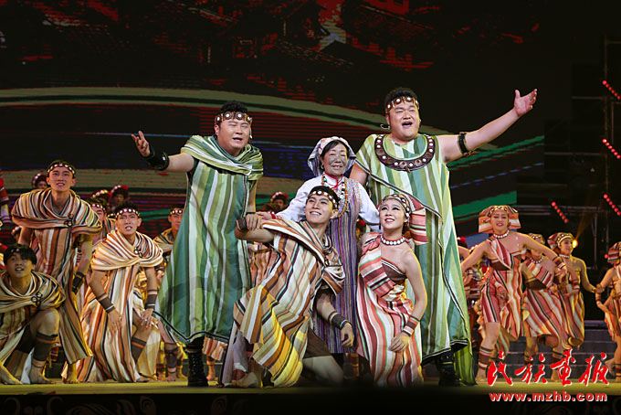 2016年第五屆全國(guó)少數(shù)民族文藝會(huì)演開(kāi)幕式上,獨(dú)龍族歌舞《邊疆和北京在一起》藝術(shù)地表達(dá)了獨(dú)龍族人的喜悅,引發(fā)了觀眾強(qiáng)烈的共鳴(陳濤 攝影)