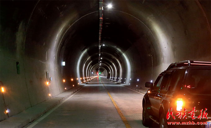 駛過(guò)燈火通明的隧道,穿越高聳的大山只用了不到十分鐘的時(shí)間,隧道拉近了獨(dú)龍江與外界的距離(和勇 攝影)