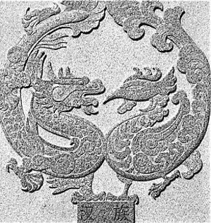 龍和鳳是漢民族最喜愛的吉祥物。龍是古代傳說的神異動(dòng)物,綜合了多種動(dòng)物的形象特征,其中的一種龍角似鹿、頭似牛、嘴似驢、眼似蝦、耳似象、鱗似魚、須似人、腹似蛇、足似鳳。龍是中華民族統(tǒng)一的標(biāo)志。傳說黃帝在統(tǒng)一中原之前以熊為圖騰,后來逐步兼并融合了以馬、牛、鹿、蛇、魚等為圖騰的部落,綜合這些部落的標(biāo)志特點(diǎn),形成了中華民族共同崇拜的龍的圖騰。因此中國人被稱為“龍的傳人”,龍的傳說和龍文化是中華民族最具代表性的文化象征之一。鳳是古人對多種鳥禽和某些游走動(dòng)物模糊集合而產(chǎn)生的一種神物。長翅膀的鳥禽是鳳的主要集合對象,因此,鳳便登上了“羽族之長”的寶座,有“百鳥之王”之美稱。