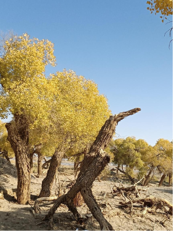 胡楊,又稱胡桐、英雄樹(shù)、異葉胡楊、異葉楊、水桐、三葉樹(shù),是生長(zhǎng)在沙漠中的樹(shù)種,它耐寒、耐旱、耐鹽堿、抗風(fēng)沙,有很強(qiáng)的生命力。