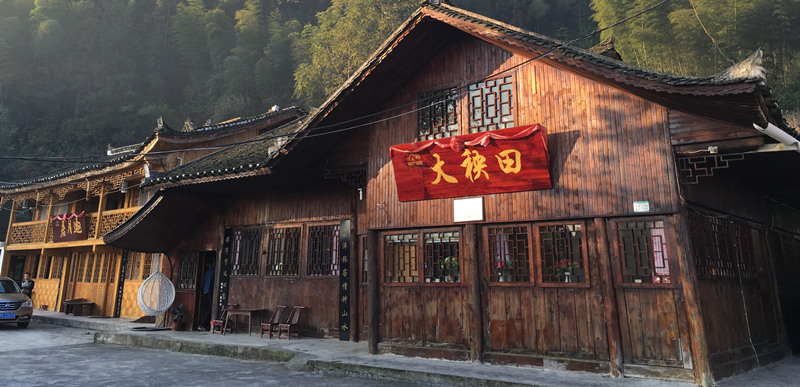 進入蘭田村,村口豎立著“利川紅第一村”的牌樓。這個村的村民靠茶葉吃飯,村里有“利川紅”品牌茶葉近3600畝的種植基地。車繼續(xù)緩緩向前,繞過幾個急彎、爬上一段緩坡后,一座古色古香的木屋出現(xiàn)在眼前。木屋背靠山,有寬敞的院落,紅褐色的墻體被青山翠竹映襯得格外醒目。木屋正中,一塊朱紅色的大牌匾上用黃色油彩寫著“大秧田”三個字,使人眼前一亮、心頭一熱,情不自禁地想要走進它。