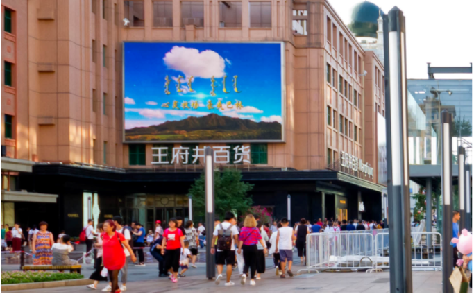 在北京王府井大街播放的30秒“心靈牧場(chǎng) 豪爽巴林”旅游形象宣傳視頻,每天滾動(dòng)播放120次(巴林右旗人民政府網(wǎng))