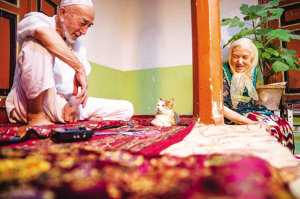 20多年前的喀什古城,老舊巷道縱橫交織,衛(wèi)生狀況較差,一些大膽的老鼠不論白天黑夜在巷道里亂竄,很多人家養(yǎng)貓是為了對付老鼠。如今走在改建后的古城里,所到之處窗明幾凈,而這里的貓從捕鼠者變?yōu)榧彝櫸铩X堃堰m應角色轉(zhuǎn)變,愜意地享受著暖暖的羊毛毯。老兩口對寵物貓像對自家的孩子一樣呵護備至。