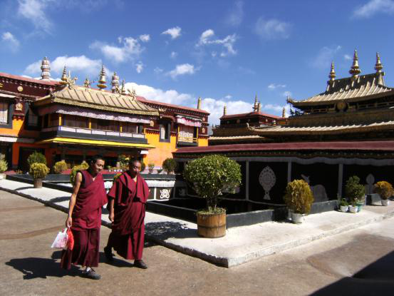 大昭寺位于西藏拉薩市中心。原名惹剎、邏些,后改稱覺(jué)康,即“釋迦佛殿”。亦稱“惹沙崔朗祖拉康”,意為“羊土神變寺”。9世紀(jì)改為“大昭寺”,意為“放經(jīng)書(shū)的大殿”。清代更名“伊克昭廟”。