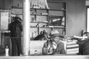 午后,茶館里的年輕人逐漸散去。一位藏族老大爺坐在火爐邊,不言不語,與茶館熱鬧的景象形成鮮明對比。他的老伴去世了,子孫也不在身邊,一個人的家總比不上茶館里熱鬧??傻搅瞬桊^后,又開始想念安靜的家。