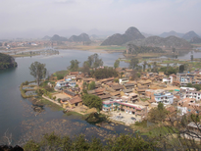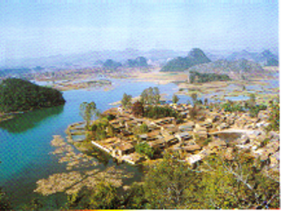 在一次學術會議上,筆者請教了首倡并主導“民族文化生態(tài)村”試點建設的尹紹亭教授,得知在他們首期的五個試點村落建設中,仙人洞村是比較成功的,于是在本項目的調(diào)查中,仙人洞村成為重點考察的對象之一?!跋扇硕匆妥逦幕鷳B(tài)村”位于云南丘北縣城西北16公里的普者黑湖畔?!捌照吆凇睘楫?shù)匾妥迦瞿嵴Z,意為“魚蝦多的湖潭”。普者黑實際是由眾多湖泊、河流構(gòu)成,總面積達165平方公里,已經(jīng)開發(fā)成由5個景區(qū)、56個景點組成的滇東南國家級著名旅游景區(qū)。