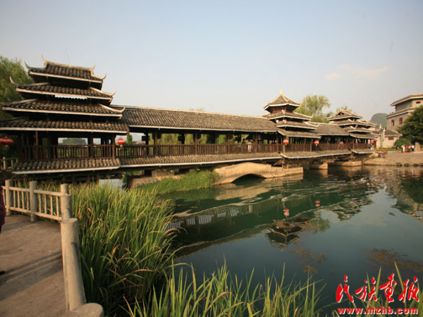 詩人郭沫若先生雖然沒有到過柳州的三江侗鄉(xiāng),但看完一幅程陽橋的圖片后,竟也引發(fā)了如潮的詩思,欣然寫下了一首七律:“艷說林溪風(fēng)雨橋,橋長廿丈四尋高。重瓴聯(lián)閣怡神巧,列砥橫流入望遙。竹木一身堅勝鐵,茶林萬載茁新苗。何時得上三江道,學(xué)把犁鋤事體勞?!?/span>