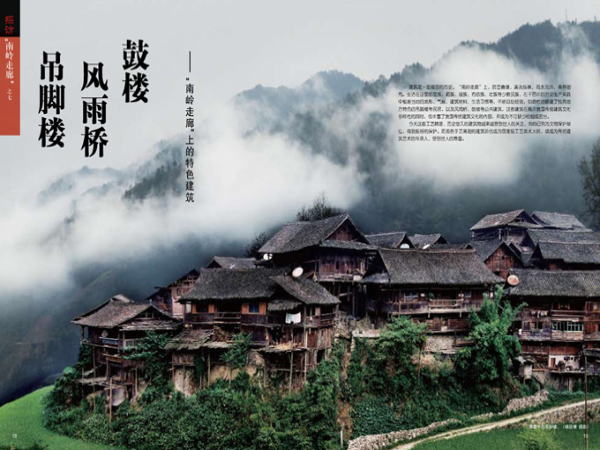 建筑是一部凝固的歷史。“南嶺走廊”上,層巒疊嶂,溪流縱橫,雨水充沛,森林密布。生活在這里的苗族、侗族、瑤族、布依族、壯族等少數(shù)民族,在千百年的勞動生產(chǎn)實踐中根據(jù)當(dāng)?shù)氐牡匦巍夂?、建筑材料、生活?xí)慣等,不斷總結(jié)經(jīng)驗,創(chuàng)造性地修建了獨具地方特色的吊腳樓等民居,以及風(fēng)雨橋、鼓樓等公共建筑,這些建筑在展示我國傳統(tǒng)建筑文化多樣性的同時,也豐富了我國傳統(tǒng)建筑文化的內(nèi)容,成為不可缺少的組成部分。