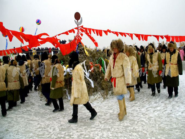 “祭湖”儀式的場(chǎng)面非常壯觀,并帶有幾分神秘的色彩。按照歷代沿襲下來的習(xí)俗,查干湖漁獵必須由當(dāng)?shù)氐?高望重的“魚把頭”主持儀式,舉行祭祀湖神,喚醒冬網(wǎng),祭拜天父地母,保佑萬物生靈永續(xù)繁衍,百姓生活幸福安康。在冰面上,擺放糖塊、炒米、水果、奶干等供品,點(diǎn)燃香火、炭火鍋,進(jìn)行誦經(jīng)祝辭,祝愿漁獵平平安安,多出 魚出好魚。