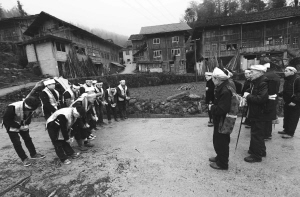 懷著對(duì)“度戒”的好奇和向往,從1月1日開始,盤文儀和其他 “受戒者”一道經(jīng)歷了起法名、請(qǐng)師傅、豎刀梯等十多天的緊張準(zhǔn)備。之后,在師傅的帶領(lǐng)下,連續(xù)三天三夜馬不停蹄地進(jìn)行了封齋、架龍門、掛神像、接香、接圣、請(qǐng)圣、點(diǎn)大羅明燈、游兵等儀式。同時(shí),通過聽?zhēng)煾淀炞x經(jīng)文,接受了族史、族規(guī)、禮儀、道德等傳統(tǒng)教儀,還經(jīng)歷了上刀梯、抓燒紅的犁頭、踩燒紅的磚頭等考驗(yàn),最終成功過關(guān)。