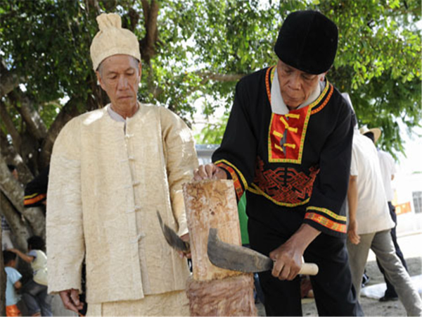 黎族樹皮布制作技藝:黎族制作樹皮布的歷史悠久,樹皮布是人類衣物從無紡布向有紡布發(fā)展的歷史見證。據考古學家研究,海南島樹皮布的歷史約有4000年。延續(xù)了數千年的樹皮布,記載了人類發(fā)展的歷程。盡管樹皮布已失去了它往日的作用,可是黎族人民卻不能忘記祖輩傳承下來的技藝。如今在哈方言、潤方言黎族中,有些家庭將制作樹皮布的技藝代代相傳,他們的子孫仍能識別制作樹皮布的樹種,并能掌握制作樹皮布的技術,這對研究黎族早期無紡布有著重要的意義。然而,目前整個海南省掌握樹皮布制作技藝的民間藝人不足5人。