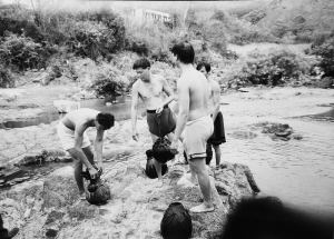 有一天,我在通什(今五指山市)的一條河邊,看見有幾個黎族人抱著大葫蘆過河。我趕緊拿出相機,在河邊的大石頭間跳來跳去追拍。沒想到一不留神就跳空了,重重地摔在石頭上,造成了骨裂,當時就不能動彈了,在醫(yī)院里躺了好長一段時間。