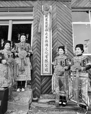 村民們在新成立的旅游文化公司門前放歌