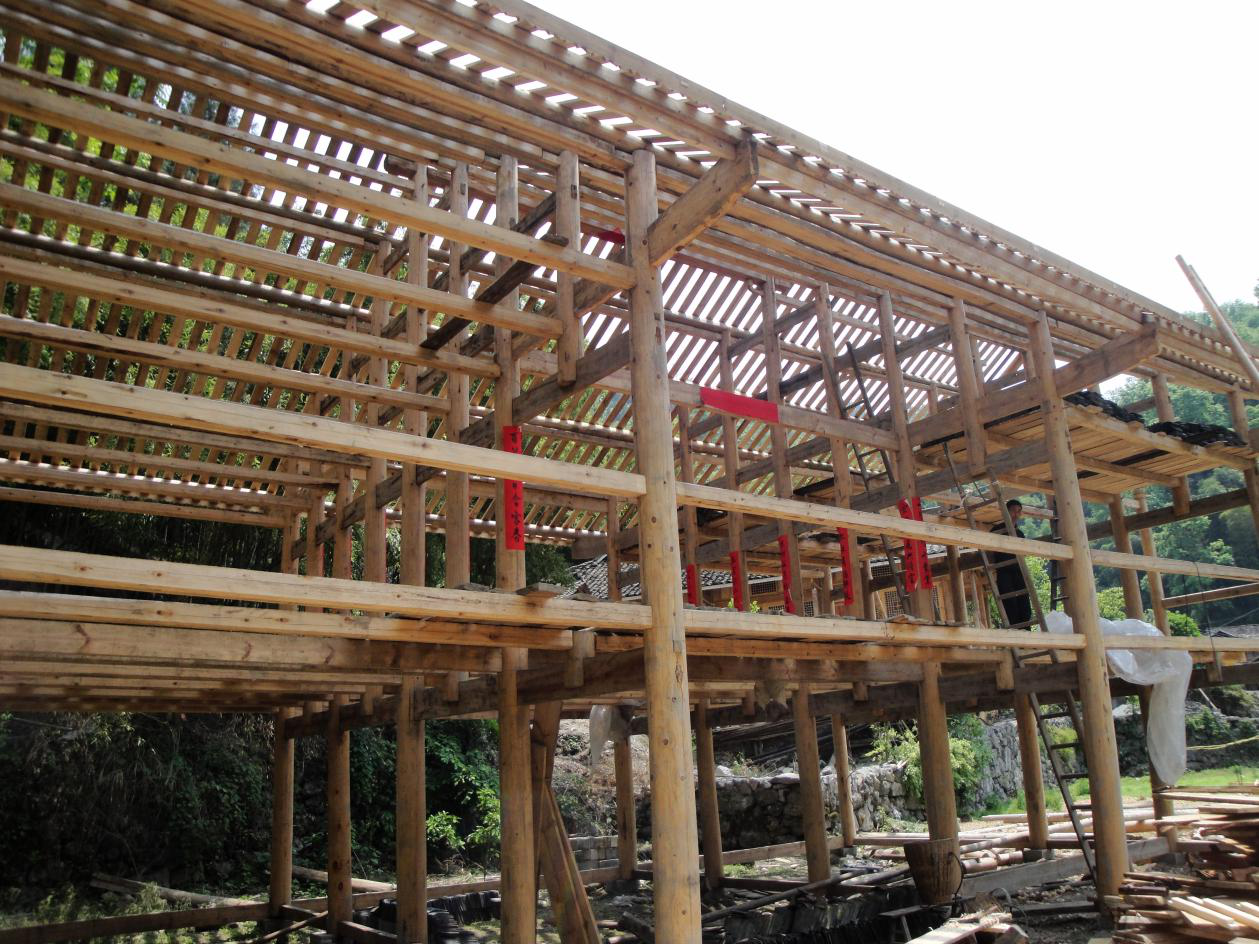 圖為重慶市酉陽縣石泉鄉(xiāng)蒼林村苗寨建筑構架 老鐵攝影