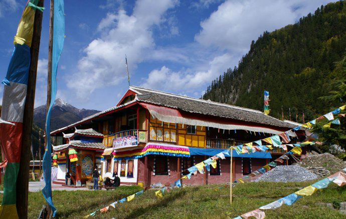 九寨溝里九個古老的藏族村寨,到處有石磨房、棧道、經(jīng)幡和藏羌歌舞等,藏族特色濃郁而神秘。原始古樸的村寨散落在綠樹環(huán)抱的群山之中,顯得更加古老、寧靜。九寨溝,平均海拔在2500米左右,屬于寒溫帶地區(qū),所以冬無嚴寒,夏無酷暑,在這里的傳統(tǒng)的建筑大都為木結(jié)構(gòu)。