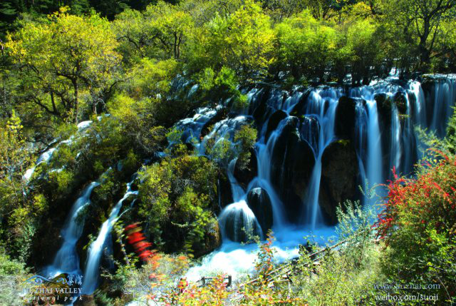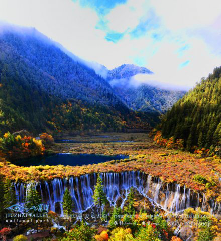 九寨溝是大自然鬼斧神工之杰作。這里四周雪峰高聳,湖水清澈艷麗,飛瀑多姿多彩,急流洶涌澎湃,林木青蔥婆娑。藍藍的天空,明媚的陽光,清新的空氣和點綴其間的古老村寨、棧橋、磨坊,組成了一幅內(nèi)涵豐富、和諧統(tǒng)一的優(yōu)美畫卷,歷來被當?shù)夭刈逋暈椤吧裆绞ニ薄>耪瘻暇皡^(qū)開放后,東方人稱之為“人間仙境”,西方人則將之譽為“童話世界”。