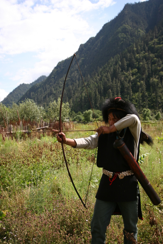 珞巴族驍勇尚武,這一特性在體育活動中也得以充分的展現。以博嘎爾人為例,部落的各種競技活動最初是在祭祀儀式中用以向鬼神展現氏族男性的武藝,起到威懾作用,后來逐漸演變成為氏族之間顯示各自男性力量的一種活動。傳統(tǒng)體育競技項目有刀術(珞巴語稱為“巴列巴讓”)、箭術(博嘎爾語中稱為“噢布啦喔布德納”)、跳高(博嘎爾語稱為“嘟嘟別”)、摔跤(博嘎爾語叫做“奧當友德納”)、抱石頭(博嘎爾語中稱為“另保波姆的那”)、掰手腕(珞巴語叫做“羅動地爾熱”)、刀術武藝(博嘎爾稱為“巴格”)。博嘎爾人的體育競技雖然簡單,但由于出自日常的生產生活,因此,既有現實實用性又有粗獷的原始美感。