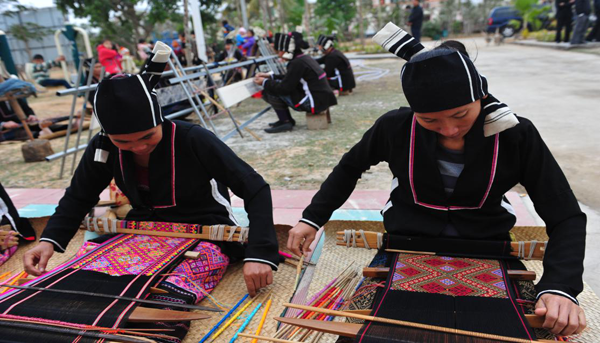 紡織也是黎族地區(qū)副業(yè)生產(chǎn)之一,紡織原料的來源,主要靠野生植物纖維,如木棉和各種野麻等,其次是以漢區(qū)或者向漢商買來的色線和色布,將其拆線使用。婦女們一般都能紡織男子上衣、吊儋和女子上衣、筒裙、胸掛、頭巾以及麻被等。筒裙和頭巾一般紡織精美,色澤巡禮、花紋精美。筒裙上的花紋,多為動(dòng)物紋或者植物紋,也有少數(shù)人物紋或用具花紋。由于紡織品多產(chǎn)于民間,沒有專門的機(jī)構(gòu)和組織,所紡織的成品,都是在不脫離農(nóng)業(yè)生產(chǎn)勞動(dòng)的條件下單獨(dú)進(jìn)行的,所以效率很低。據(jù)調(diào)查,織一塊吊儋需要十天,一塊頭巾十天,一件無袖男子上衣四十天,一條麻被一年(長近四米,寬二點(diǎn)四米),紡織品一般均為自用,極少出售或者交換。