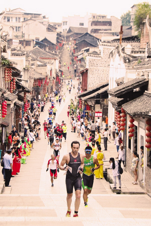 此次活動最大的亮點是傳統(tǒng)古老的“非遺”文化和劃騎跑三項挑戰(zhàn)賽緊密結合,充分利用黎平生態(tài)資源設置比賽線路。比賽全程131.5公里,途經(jīng)德鳳、高屯、巖洞、茅貢、壩寨等5個鄉(xiāng)鎮(zhèn)(街道)。兩天時間內(nèi),選手們穿行在黎平最亮麗的精品旅游示范區(qū)域——“百里侗寨”文化體驗走廊,穿越古木參天的森林,探秘古樸神奇的侗寨,感受清新秀麗的茶園,經(jīng)過滿載美妙愛情故事的風雨橋,逐浪于綠如翡翠的三什江,奔跑在侗家如詩如畫的田野間,路過桂花臺、五里橋、東風林場等多個著名景點,在侗鄉(xiāng)黎平的多情山水和旖旎風光中追尋健康、快樂。身著民族服裝的侗族姑娘、小伙兒,在賽事最精彩的發(fā)令、節(jié)點交接、終點沖刺階段各個環(huán)節(jié)都唱起侗族大歌助興,“掠過古夢邊緣的旋律”讓這項國際性的現(xiàn)代化賽事洋溢著濃濃的“中國風”。