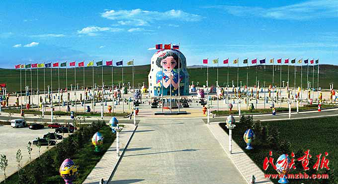 中國(guó)最大的陸運(yùn)口岸城市滿洲里的套娃廣場(chǎng)彩旗飄揚(yáng)(呼倫貝爾市委宣傳部供圖)
