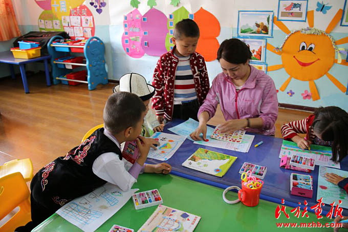 有一年春季,古麗孜娜提剛從外地學習回來,就接手了一個新班。這個班的幼兒大多來自農村,在常規(guī)習慣、自理能力、適應性、語言發(fā)展等方面都較弱。每次上幼兒園都又哭又鬧。古麗孜娜提還未成家,她把孩子們當成自己的孩子,耐心地安撫每一個孩子,走進他們的心靈。