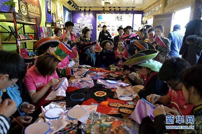土族人的盤繡歷史悠久,工藝獨具匠心,有較高的文化價值,2006年被列入第一批國家級非物質(zhì)文化遺產(chǎn)名錄。盤繡源于青海省互助土族自治縣,十八大以來,互助縣土族自治縣將勞動力培訓(xùn)轉(zhuǎn)移和市場需求結(jié)合起來,發(fā)展具有地方民族特色的土族盤繡培訓(xùn)項目,把發(fā)展土族盤繡作為擴大農(nóng)村婦女增收就業(yè)的渠道之一。目前,全縣有2萬余名婦女從事土族盤繡工藝品的制作,使盤繡這一古老的手工藝得到傳承和發(fā)展,通過一針一線間實現(xiàn)了土族文化與世界文化的交流。